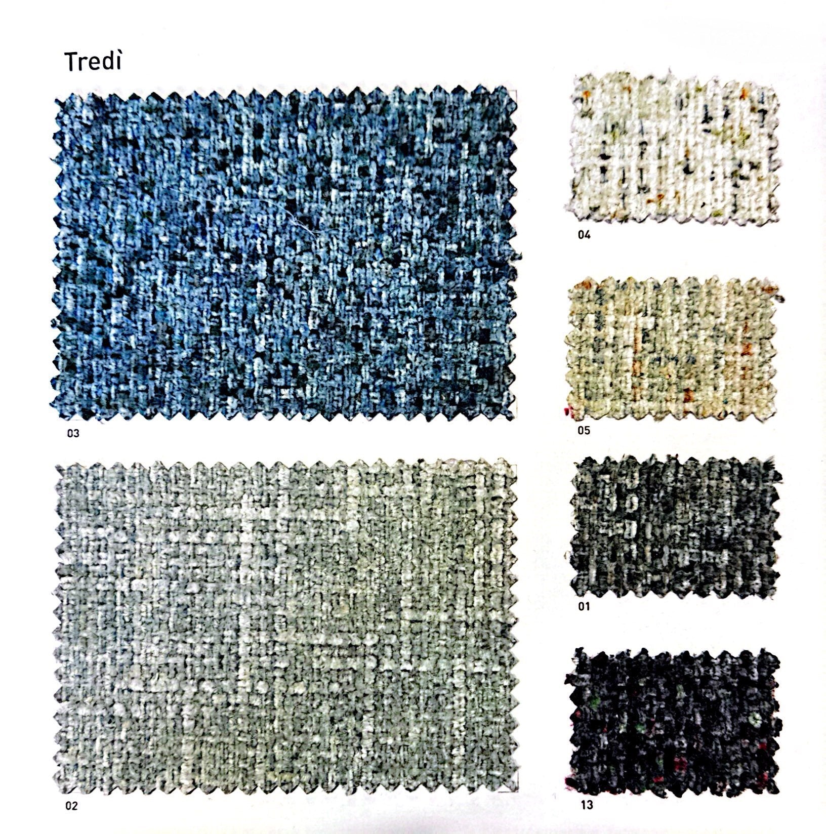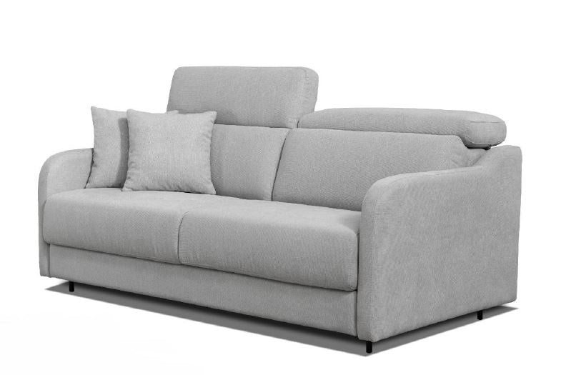Divano letto 3 posti con tessuto a scelta. Materasso 140X190 H 17 cm. Rete elettrosaldata e cinghia elastica ad alta resistenza.