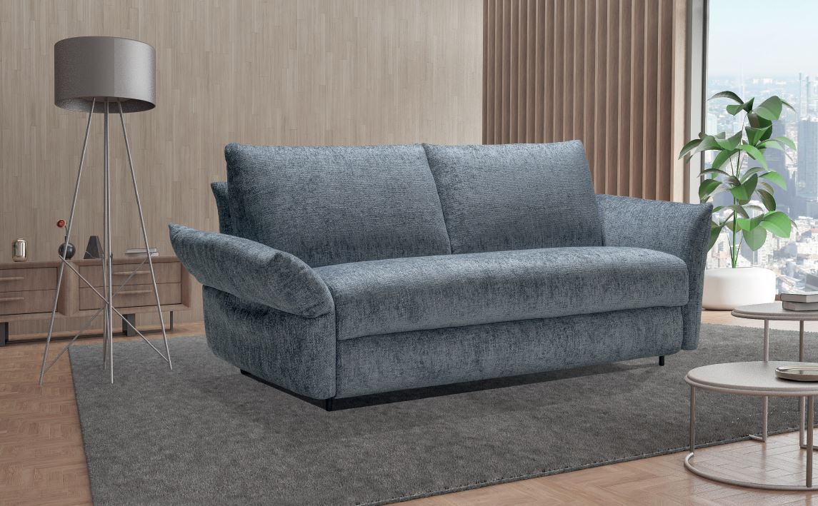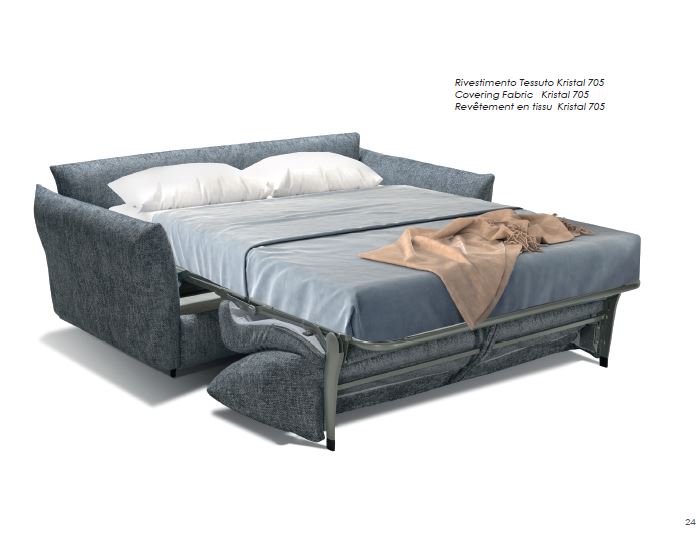 Divano letto 3 posti braccioli regolabili con tessuto a scelta. Materasso 140X190 H 13cm. Rete elettrosaldata e cinghia elastica ad alta resistenza.