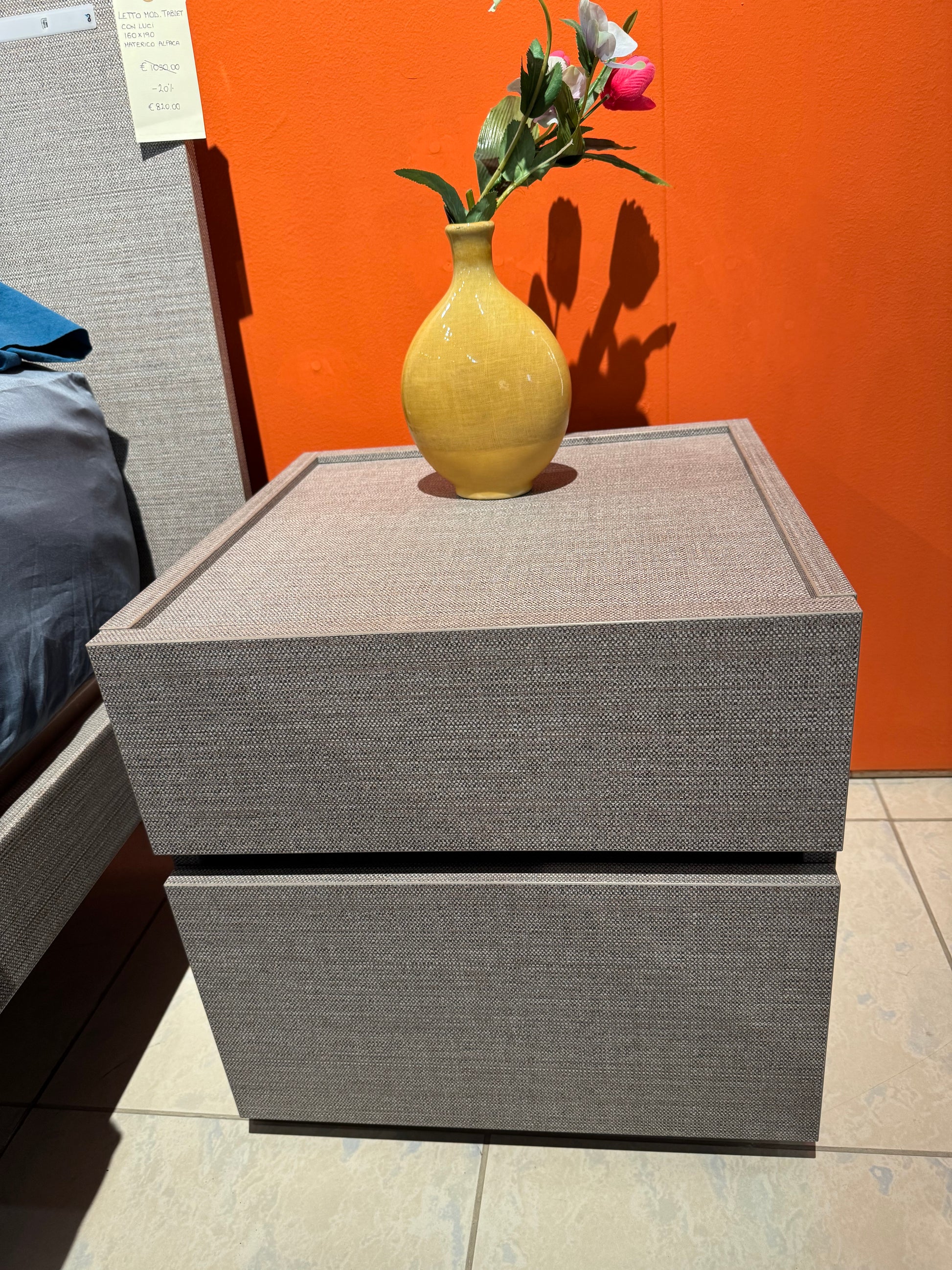 Comodino modello replay materico alpaca L 44 cm P 44 cm H 44.8 cm.